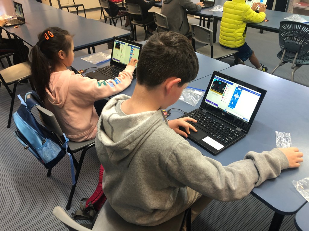 We managed to get through a lot of coding and were impressed with how everyone worked hard and achieved some great results, creating a compass, spirit level, calculator and more.